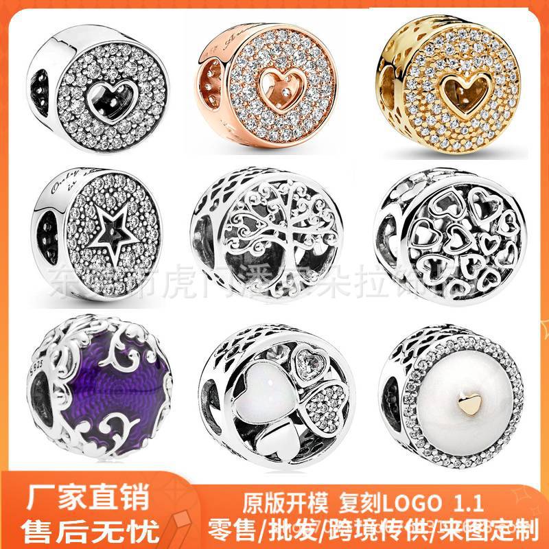 Panjia S925 White Copper Silver Plated Diamond Heart Beads DIY Accessories Bulky Beads Hanging Bracelet