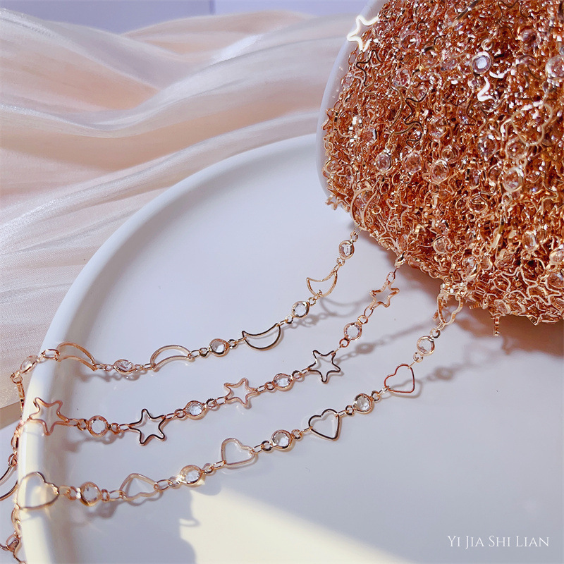 DIY jewelry accessories Moon five-pointed star chain 4mm Diamond and love handmade copper chain pure copper color retaining hair accessories necklace