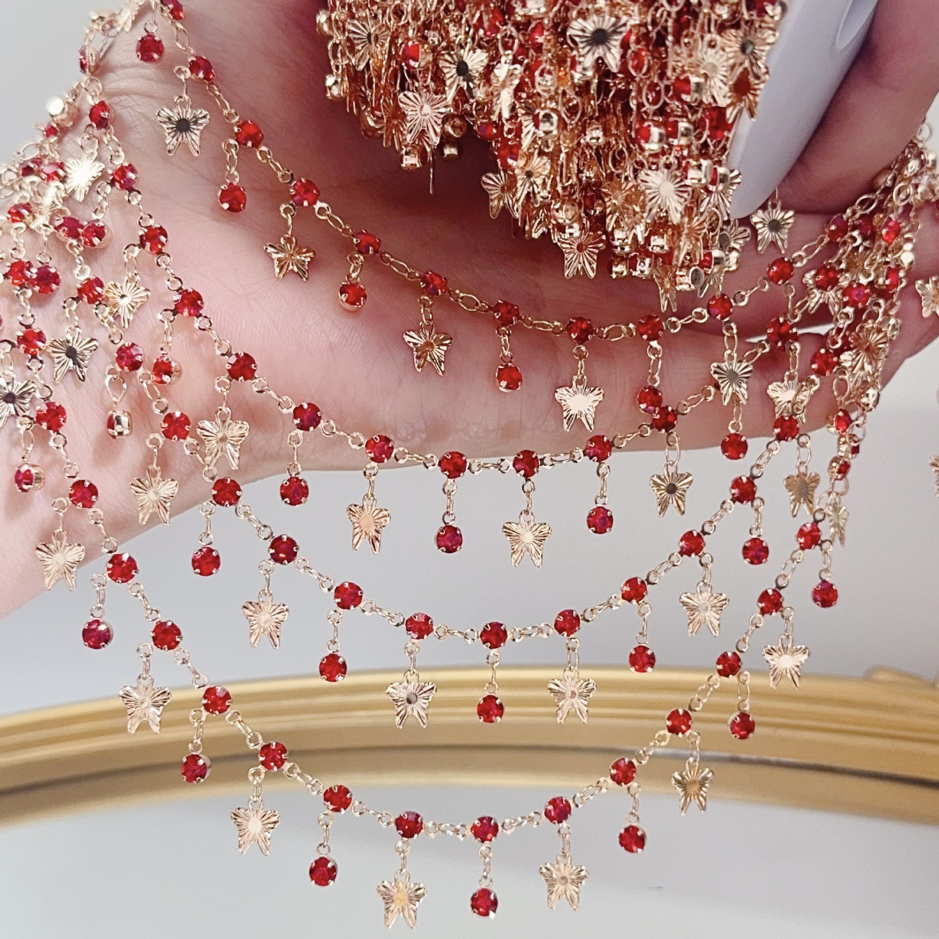 Bloody Butterfly~Diy Red Embossed Butterfly Diamond Chain High Color Retention Handmade Copper Chain Lolita Jewelry Clothing Accessories