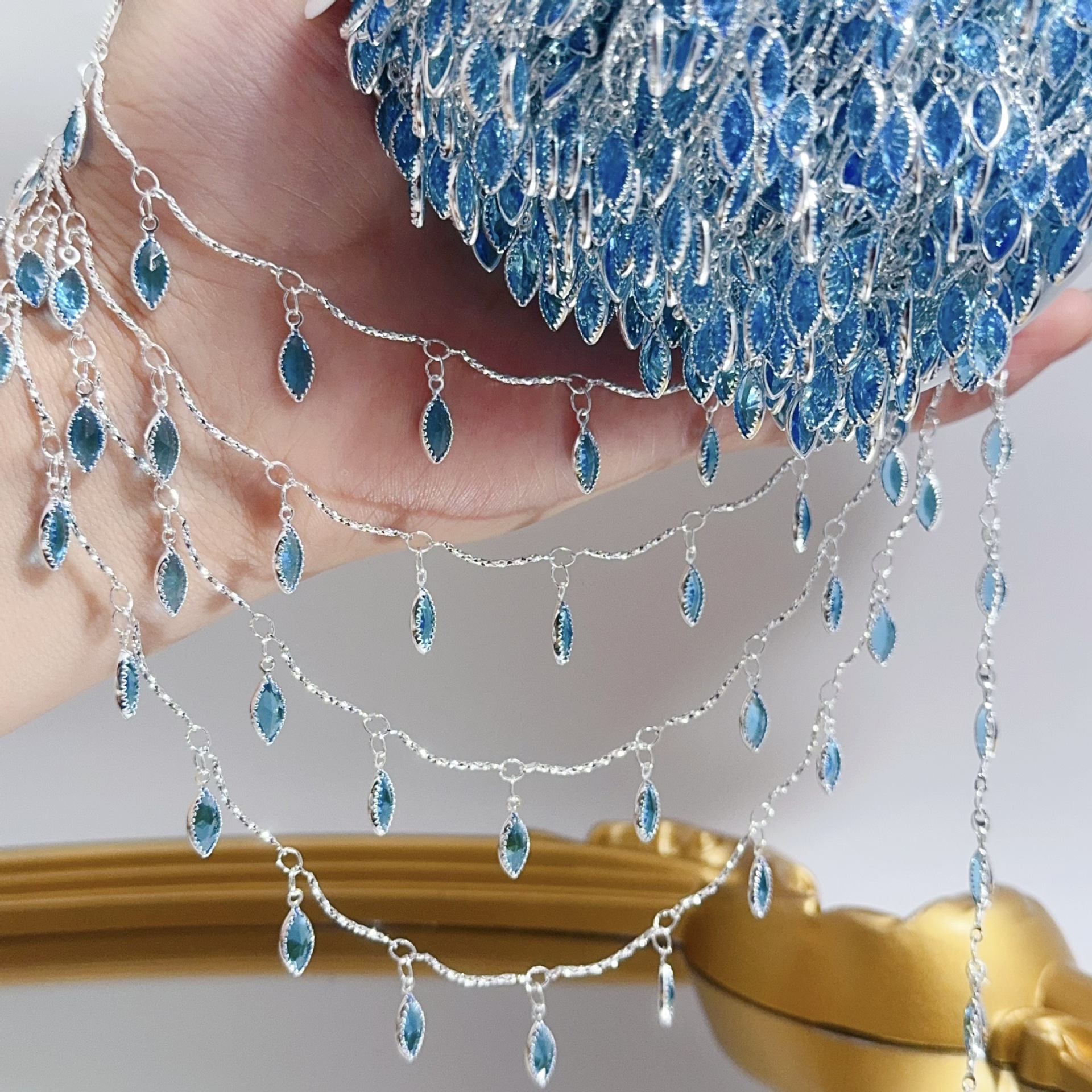 DIY chain sea salt blue edging diamond chain high color light blue rhinestone handmade copper chain necklace clothing accessories
