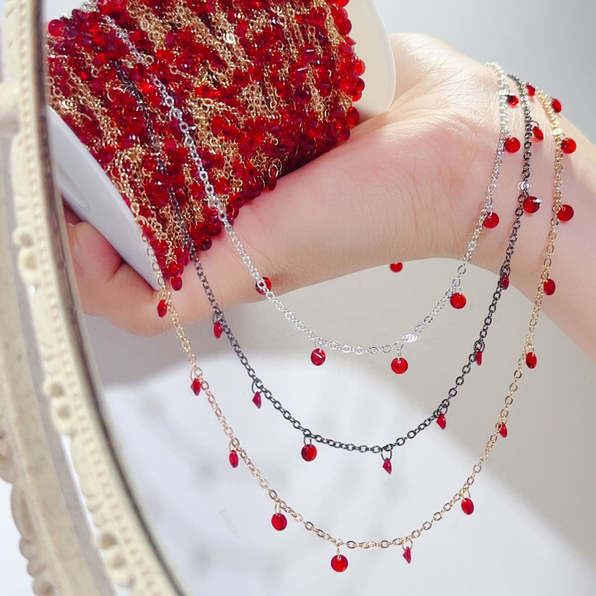 DIY Jewelry Chain Red Dream Natural Cut Zircon Chain Advanced Handmade Copper Chain Necklace Bracelet Material