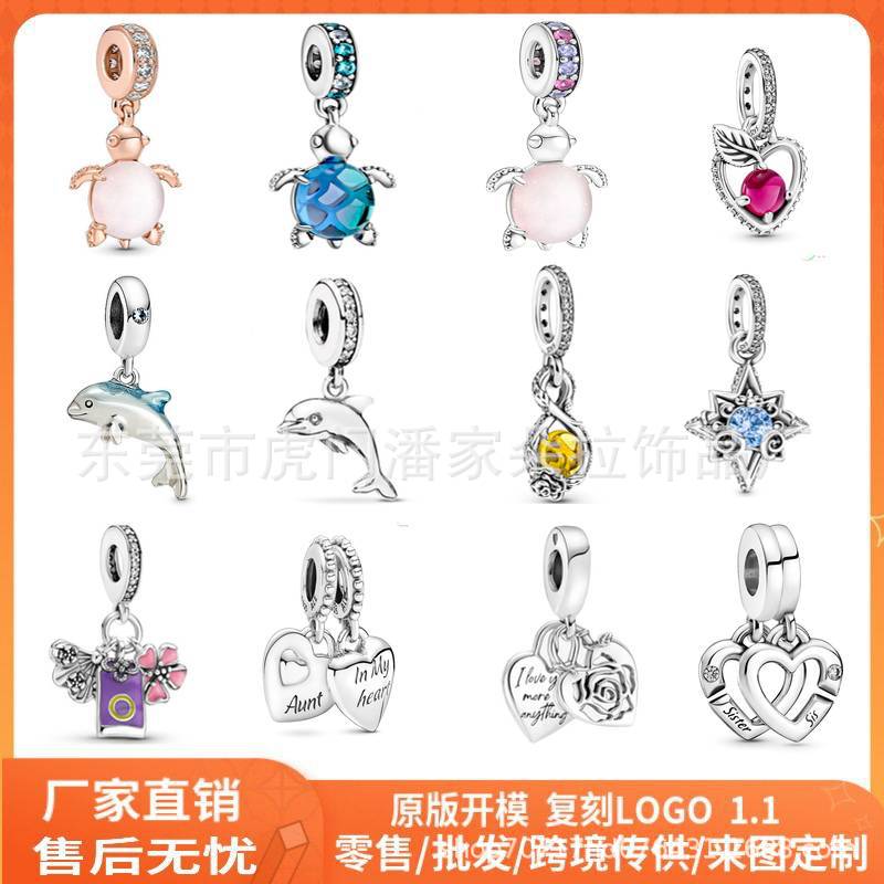 925 Silver Plated Rose Gold Turtle Pendant diy Accessories Beaded Bracelet