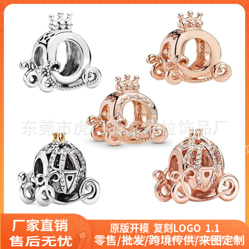 Panjia White Copper S925 Silver Plated Pumpkin Car Beaded diy Accessories Hanging Ornament Beads Bracelet