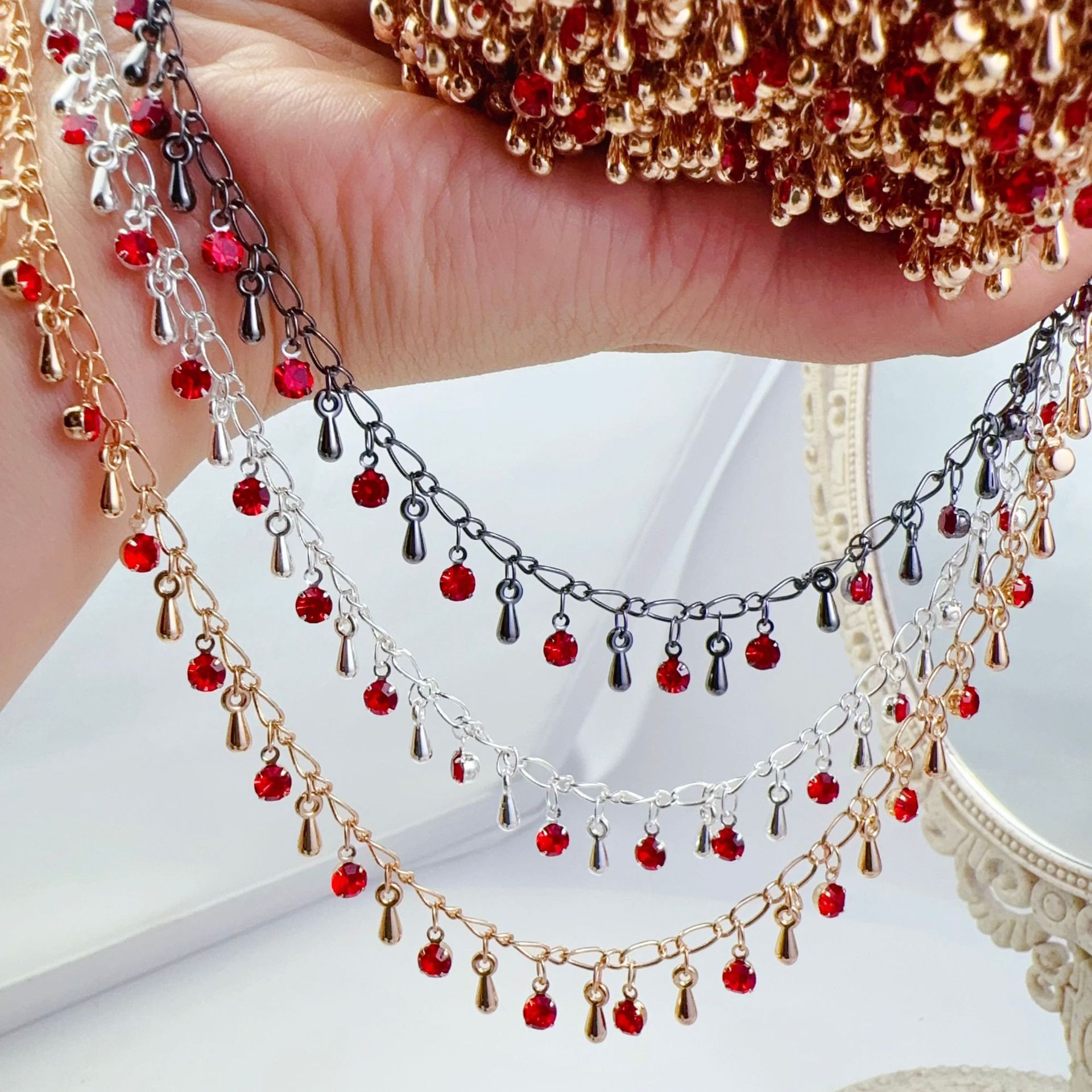 diy chain expensive gas red diamond water drop chain high color antique headdress copper chain western wind clothing accessories