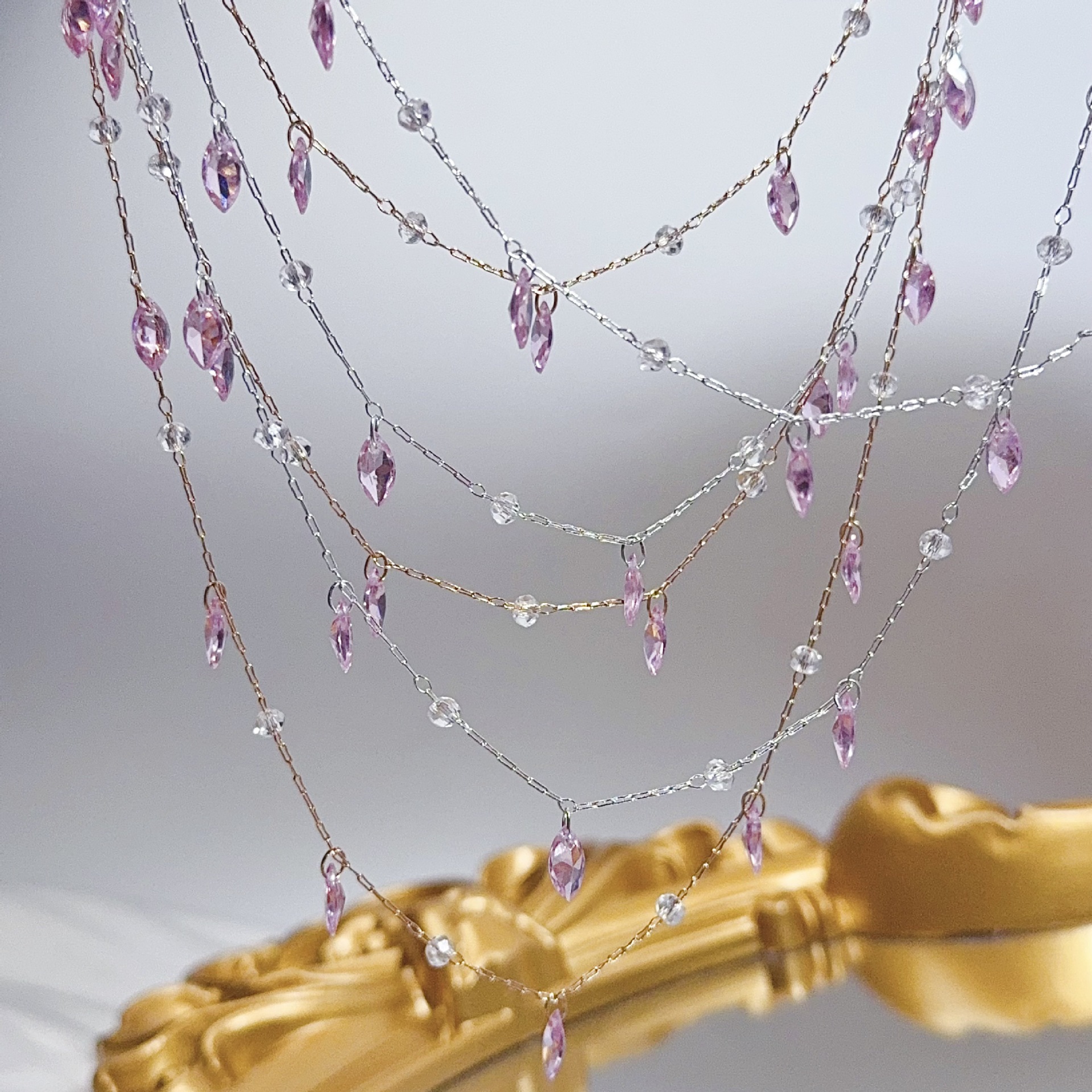 Dinner Protagonist Pink Zircon Crystal Chain Pure Copper Color-retaining DIY Handmade Copper Chain Necklace Bracelet Jewelry Accessories