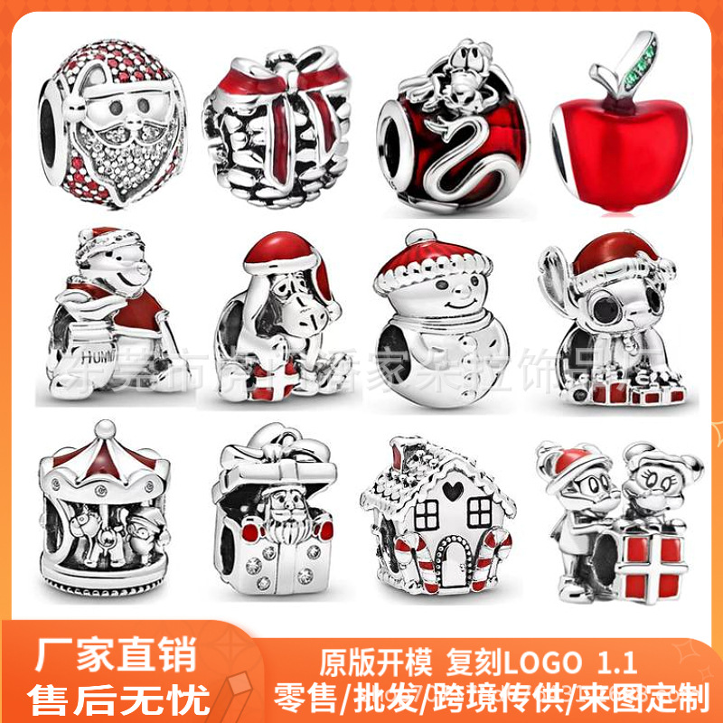 Panjia White Copper S925 Silver Plated Christmas Series Red Apple Beaded diy Accessories Hanging Bracelet Bracelet