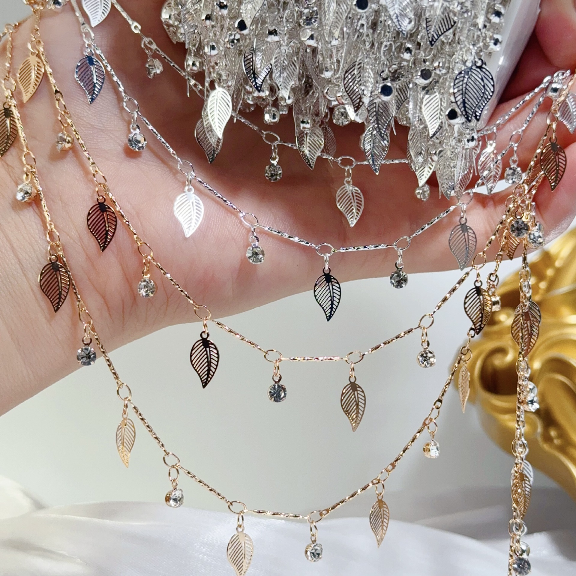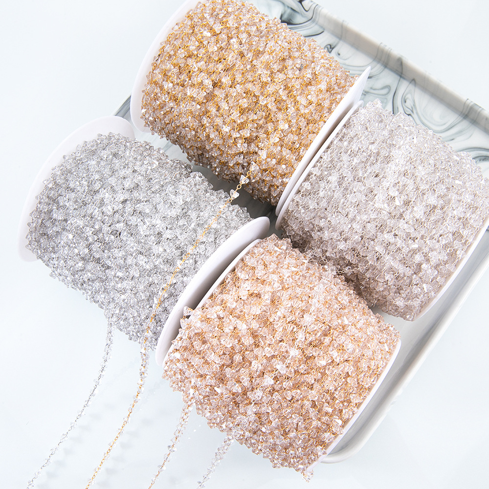 diy chain sparkling high color copper chain batch flower stick flashing diamond chain antique headdress tassel jewelry accessories