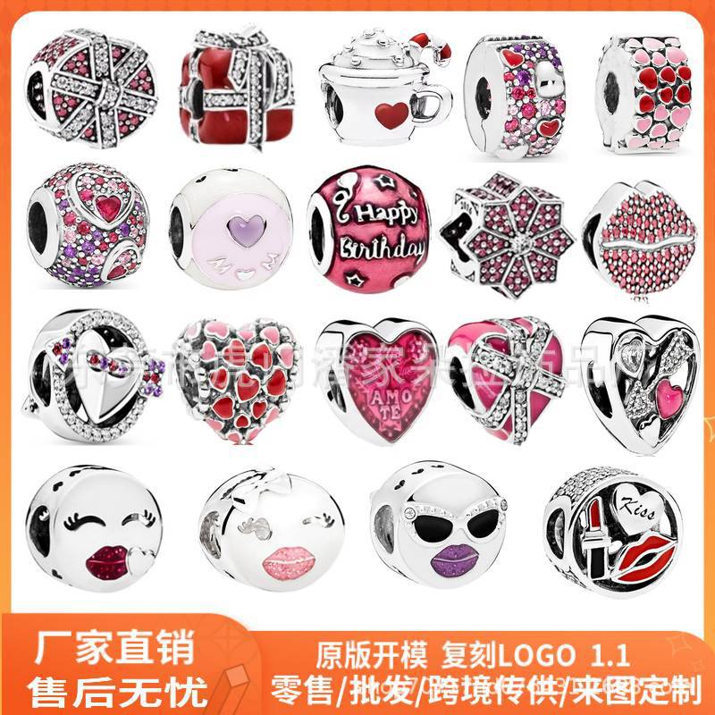 Panjia white copper S925 silver-plated diamond-embedded heart beads diy accessories loose beads bracelet