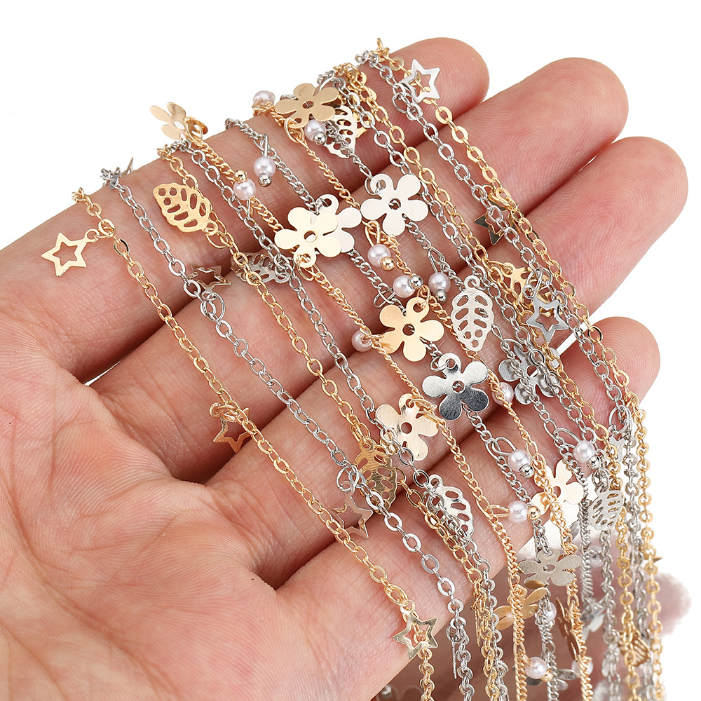 High quality color-retaining copper chain Clover five-pointed star leaf star Pearl chain diy bracelet jewelry accessories