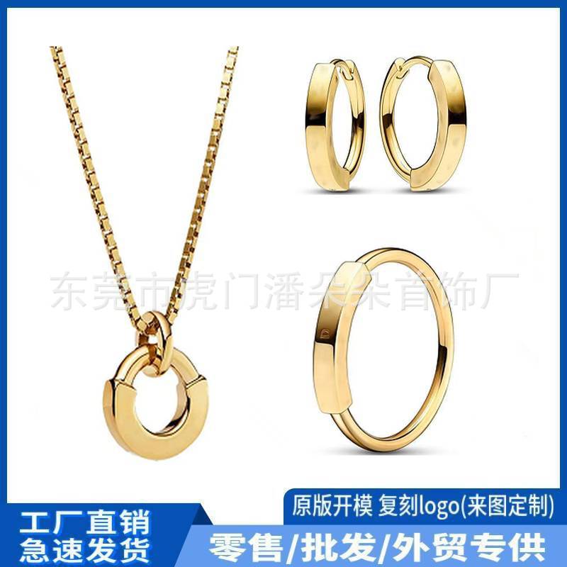 Panjia New S925 White Copper Silver Plated Necklace Golden Earrings Ring Three-in-One Pendant Necklace Jewelry Female Jane