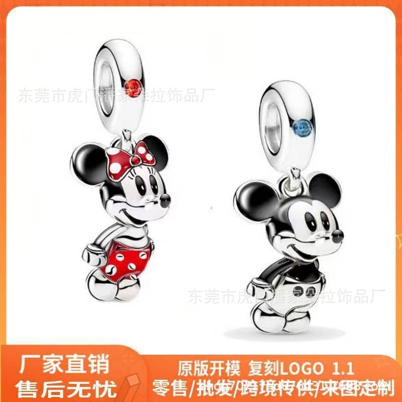 Wholesale Jewelry White Copper Silver-Plated Beaded Cartoon Mickey Pendant Necklace Fashion Versatile Pendant DIY Accessories