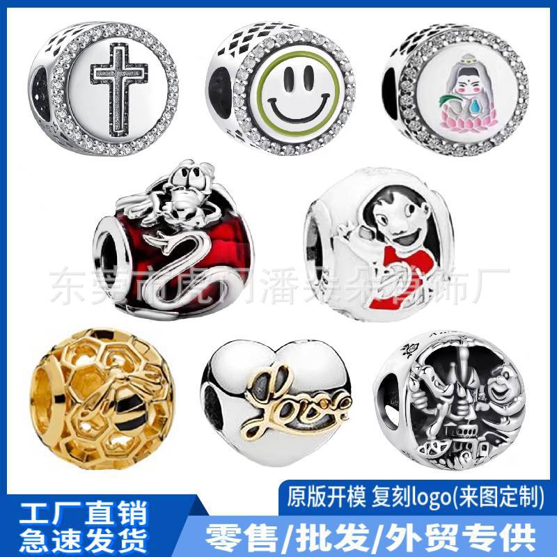 Panjia beads white copper bracelet diy beads beaded tennis pendant love charm loose beads bracelet Accessories Wholesale