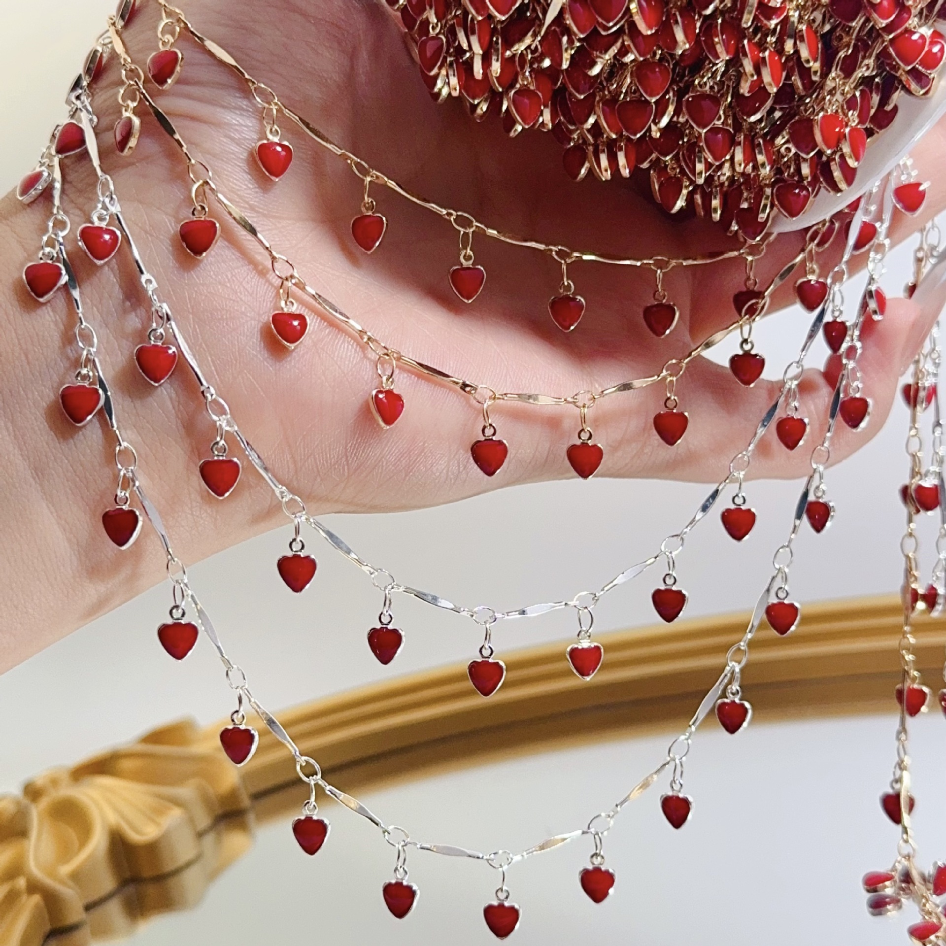 Heartbeat Filling the Screen~Diy Chain High Color Retention Red Heart Oil-Drip Handmade Copper Chain Retro Peach Heart Necklace Jewelry Accessories