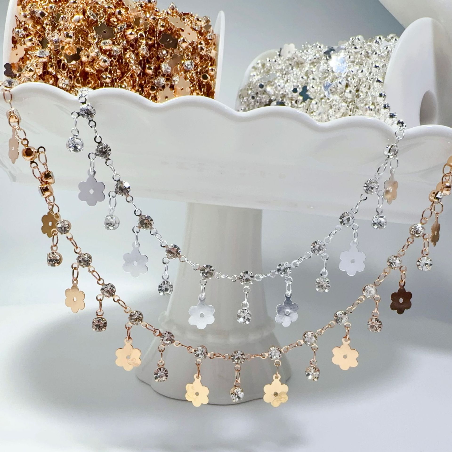 DIY Chain Three-Claw Drill Hanging Flower Drill Chain High Color Preservation Handmade Copper Chain Dunhuang Costume Alien Style Jewelry Accessories