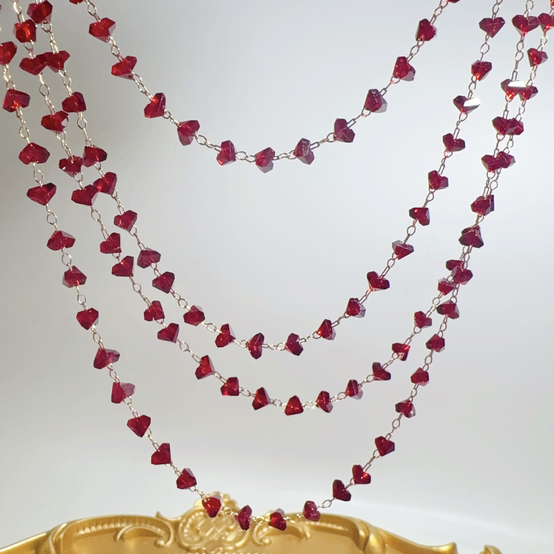 DIY chain garnet red crystal chain high color angola red triangle crystal copper chain antique hair accessories