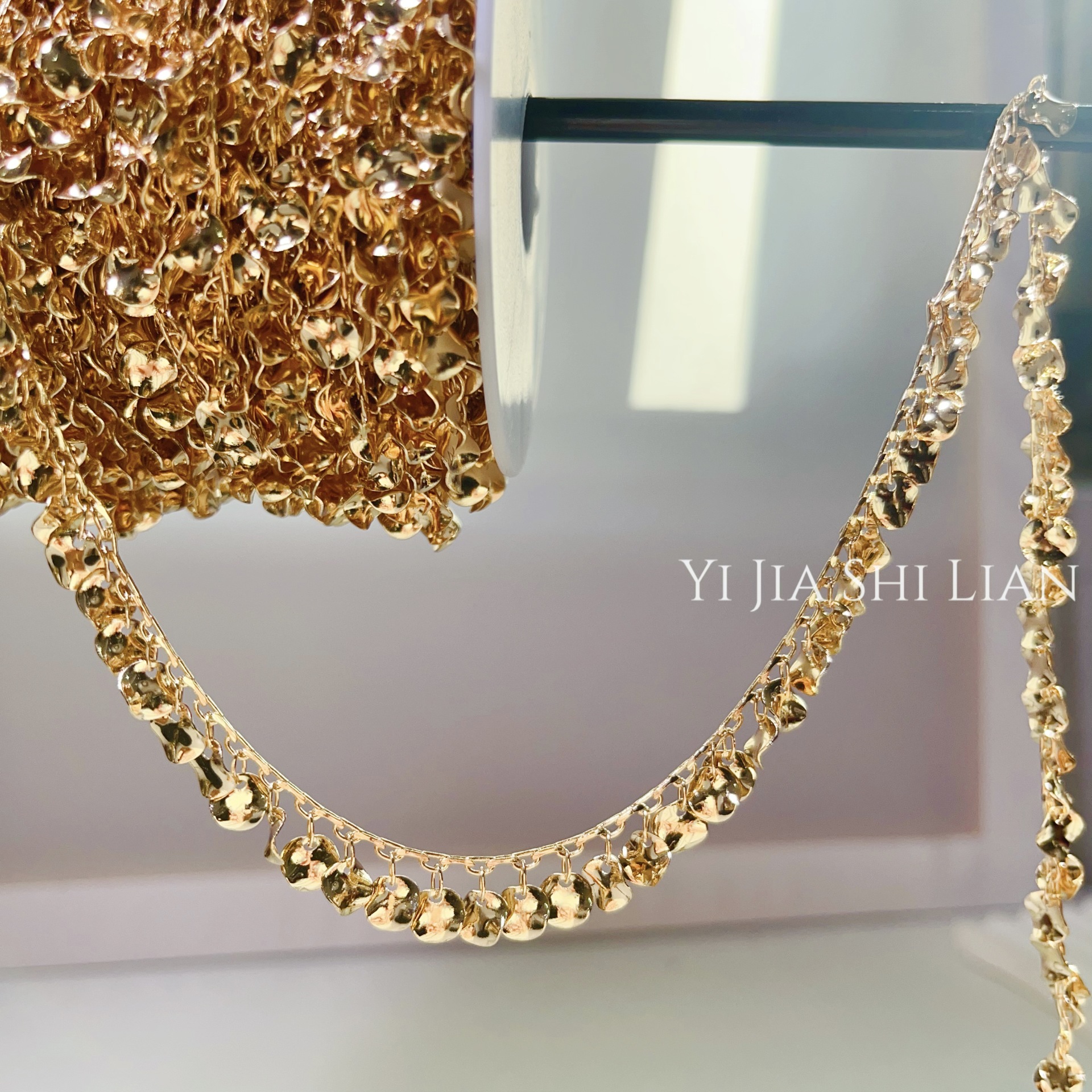 Super fairy sequin tassel chain niche design wave wafer copper chain diy jewelry material personalized metal necklace
