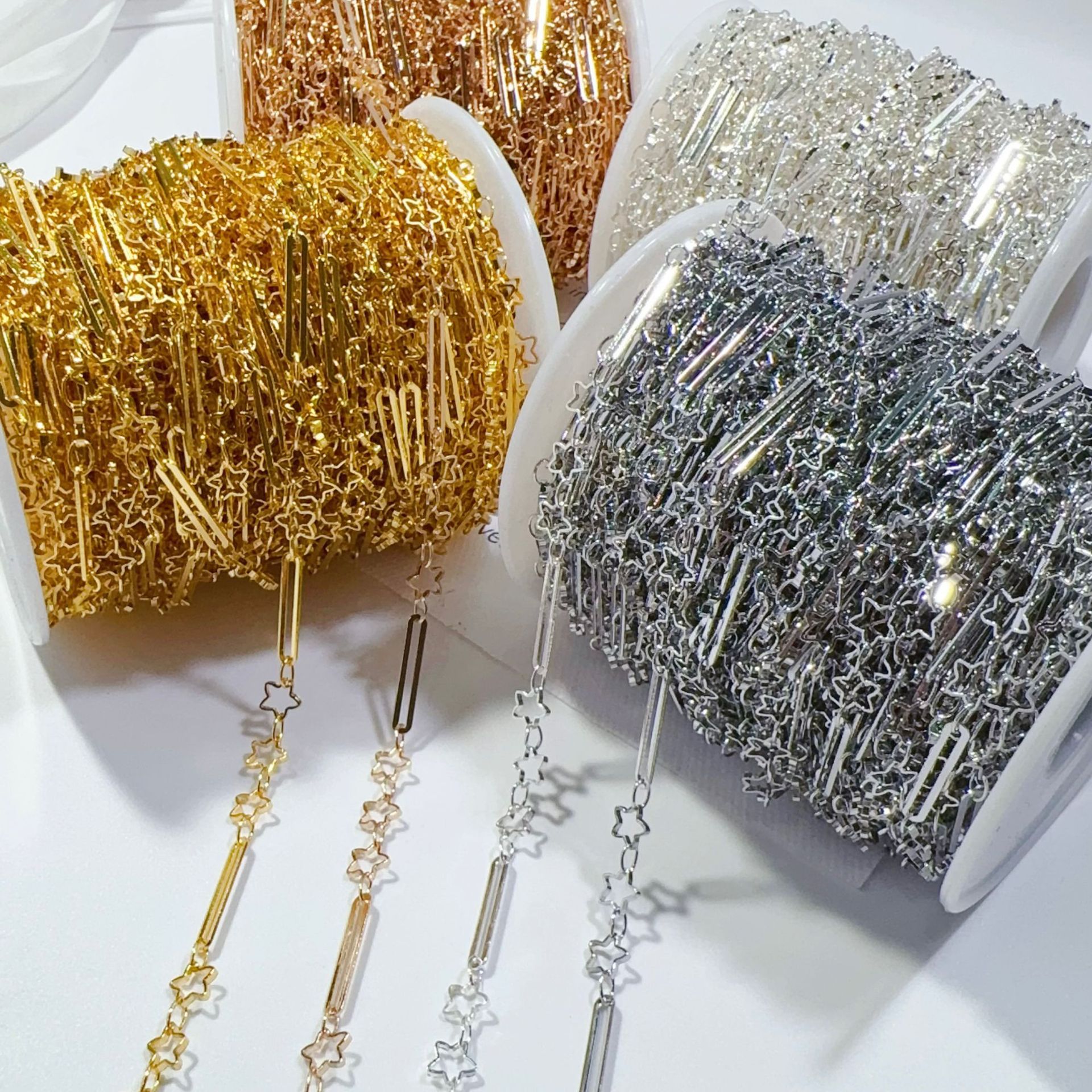 DIY jewelry chain design feeling sparkling small star copper chain electrophoresis color retention hollow five-pointed star chain accessories