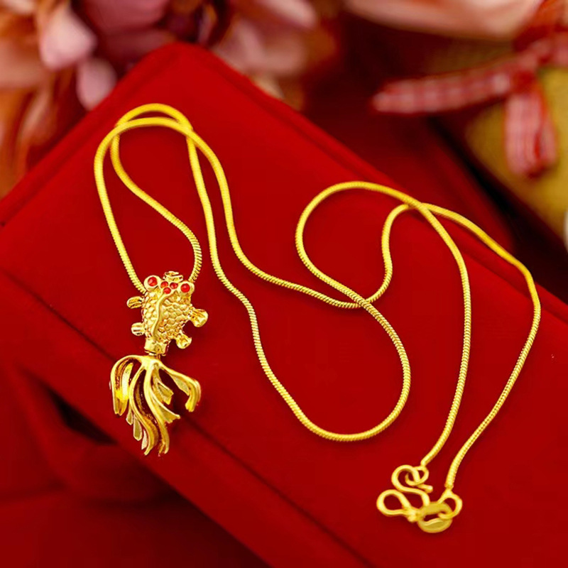 Brass Gold-plated Small Goldfish Pendant Women's Vintage Sand Gold Necklace Exquisite Atmospheric Snake Bone Chain Jewelry Gift
