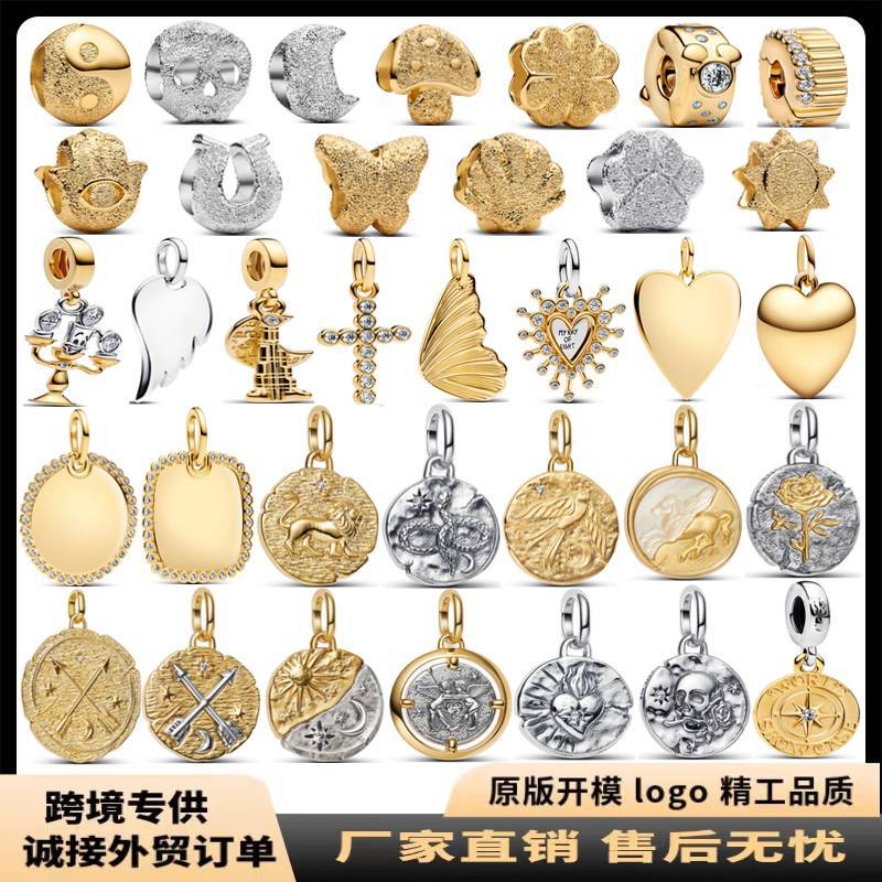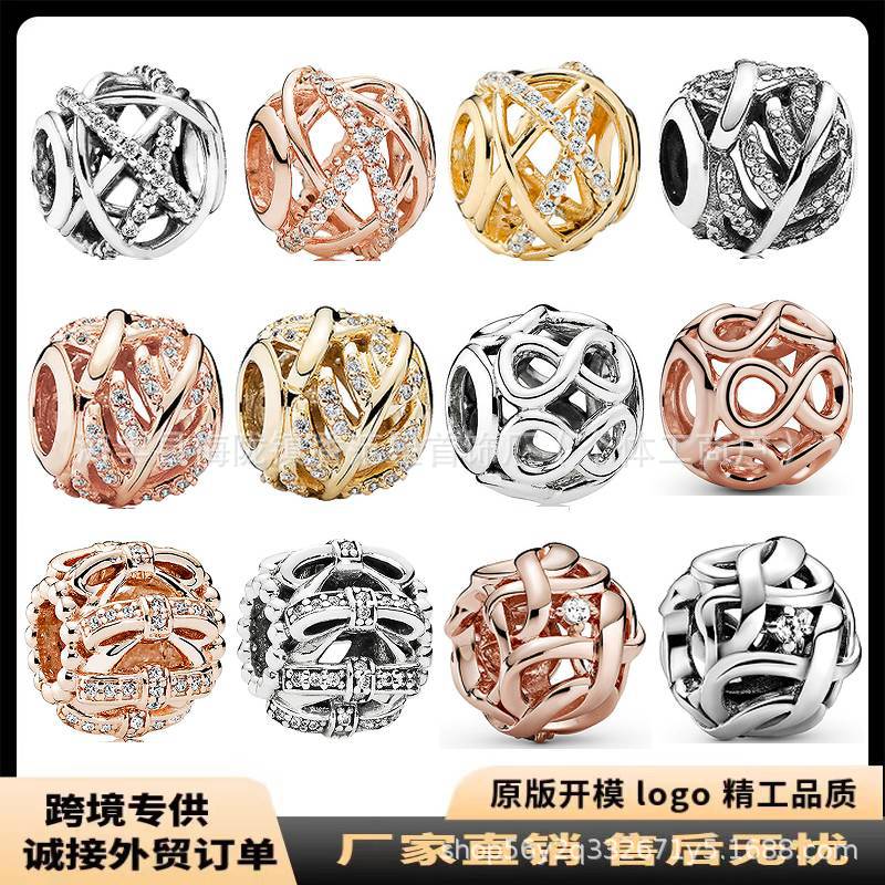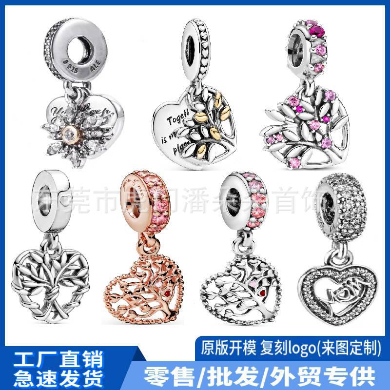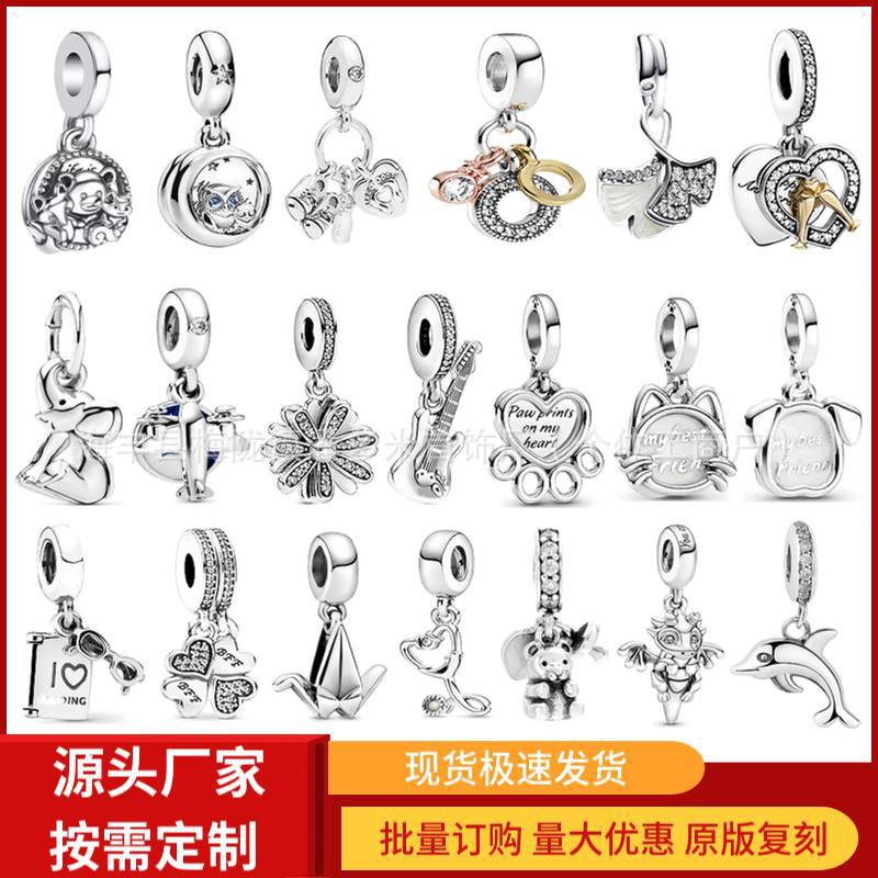 S925 White Copper Beads Heart Beaded Bracelet Pendant Cartoon Pendant DIY Jewelry Accessories Cross-Border Popular Jewelry