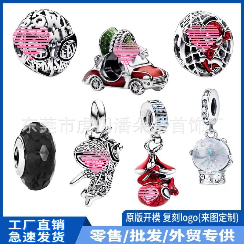 Pan's Christmas Cartoon Beads White Copper Car Beaded Bracelet Women's Black Glass Beads Snow Ball Pendant Pendant
