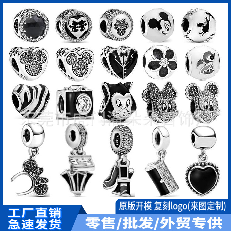 Panjia White Copper Bracelet Black Series Mickey Minnie Beaded Accessories Spades Camera Loose Beads Cross-border Wholesale
