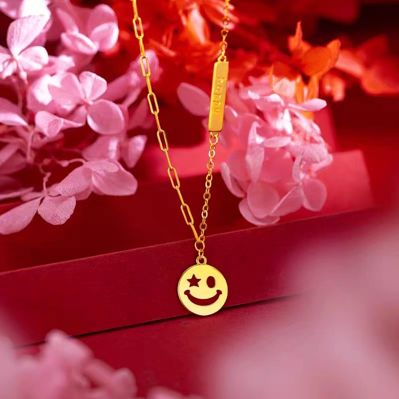 Little Red Book ins style smiley face necklace brass gold plated niche high sense expression bag smiley face online celebrity pendant AB chain