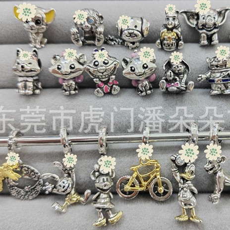 Panjia White Copper Silver-Plated Necklace Beaded DIY Bracelet Pendant Cartoon Cartoon Loose Beads Animation Beads Jewelry Accessories