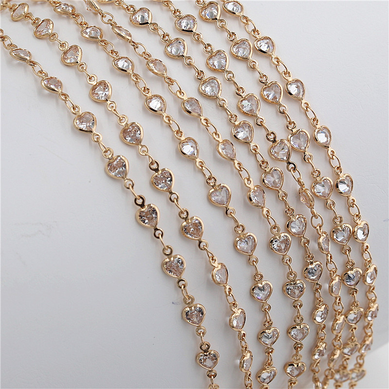 DIY Jewelry Accessories Copper Color-Preserving Zircon Heart Chain Handmade Materials Bracelet Necklace Headwear Loose Chain