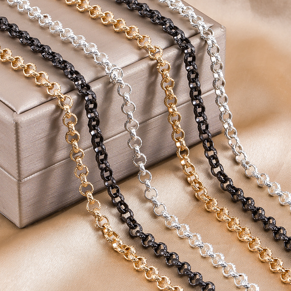 4mm Flat Embossed Copper Chain Flattened Wire Round Cross Chain Electroplated Color-Preserving O-Shaped Chain DIY Bracelet Necklace Jewelry Accessories