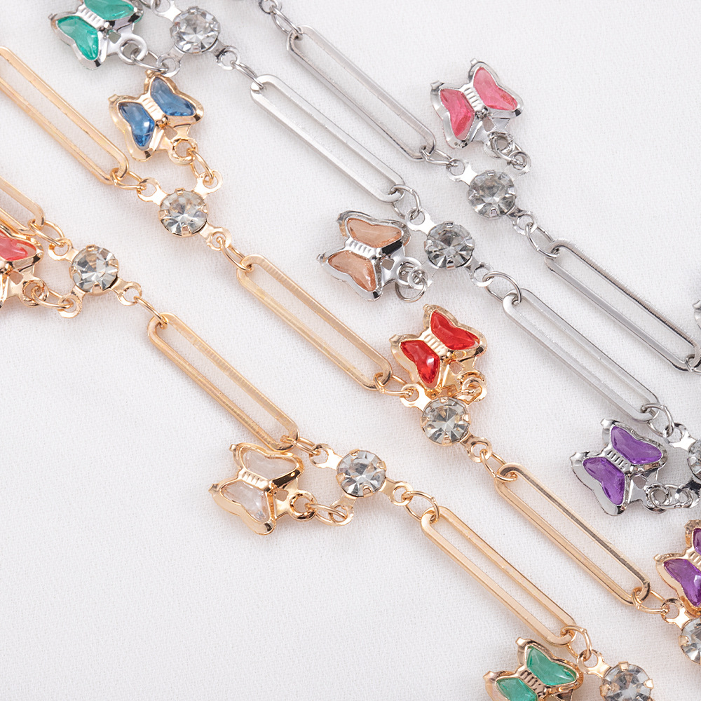 diy jewelry chain butterfly pendant crystal chain color retaining copper chain necklace bracelet enamel color dispersion chain material