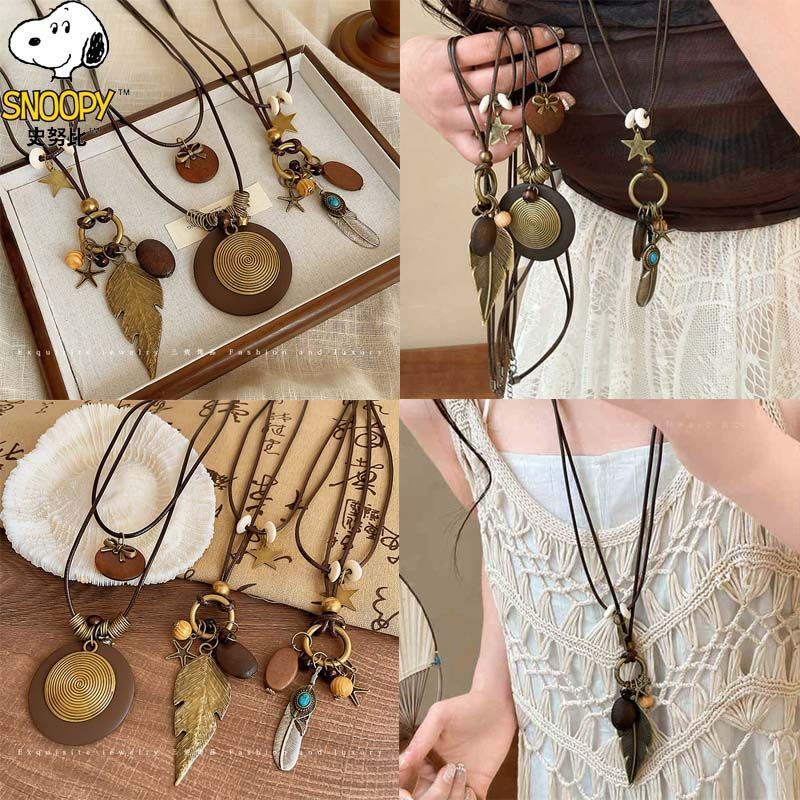 New Chinese Zen Bronze Feather Necklace Women's Bohemian Ethnic Style Retro Sweater Chain Long Halter Accessory