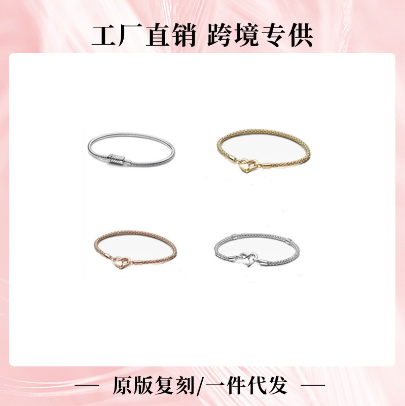 Panjia Dora S925 White Copper Silver-Plated Three-Color Fashion Heart Basic Beaded Bracelet DIY Women's Snake Bone Necklace