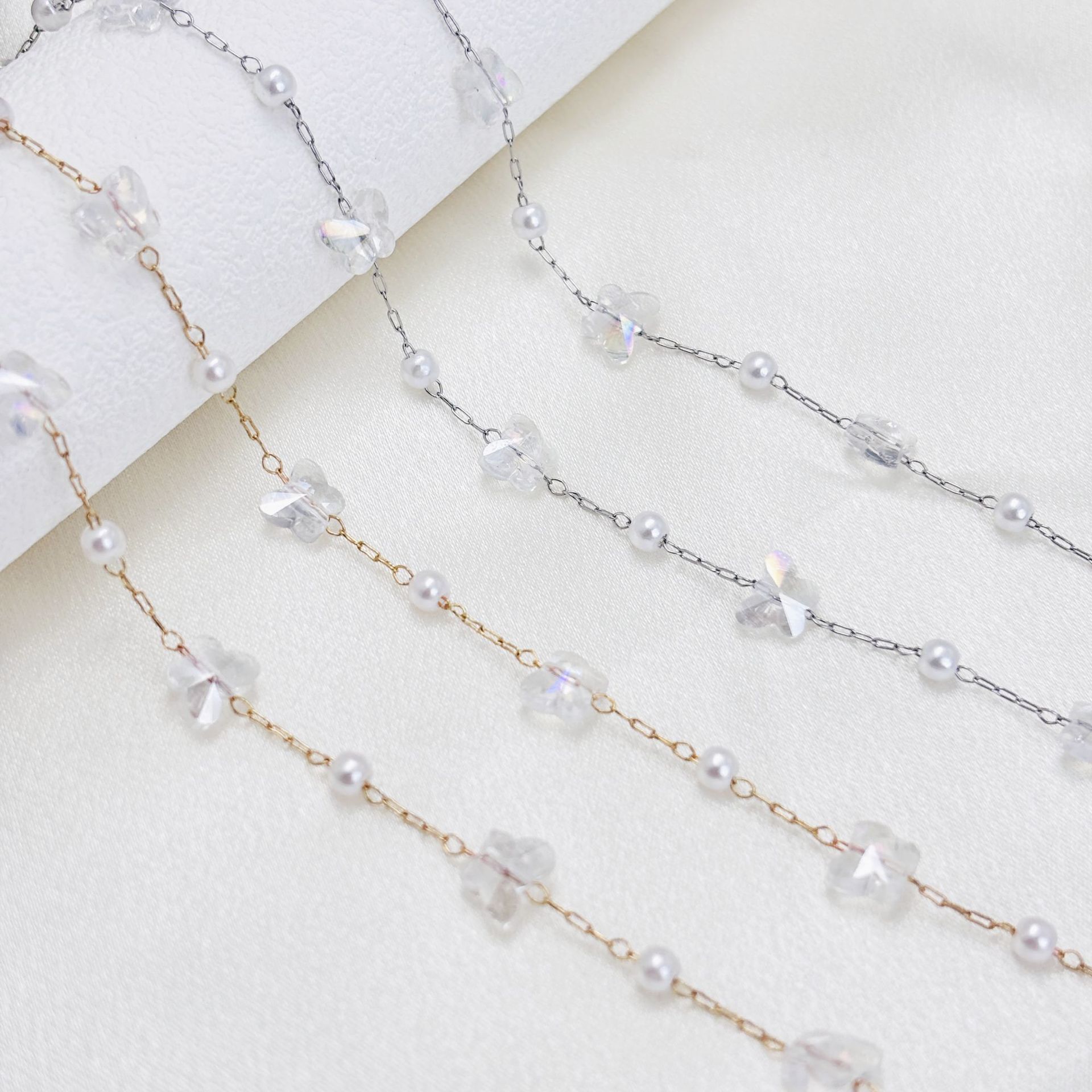 DIY Chain Crystal Butterfly Chain with 4mm Small Pearl Copper Chain, Antique Style Hairpin Finishing Tassel Accessory Ab Color