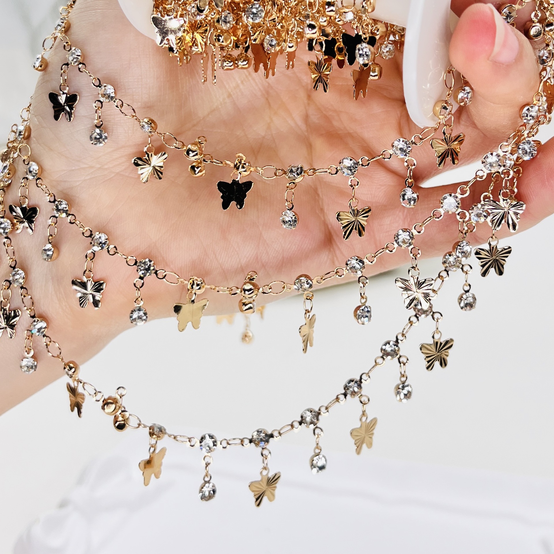 DIY Jewelry Accessories Copper Chain Rhinestone Floral Butterfly Tassel Chain Exotic Ancient Style Hanfu Handmade Headwear Rhinestone Chain