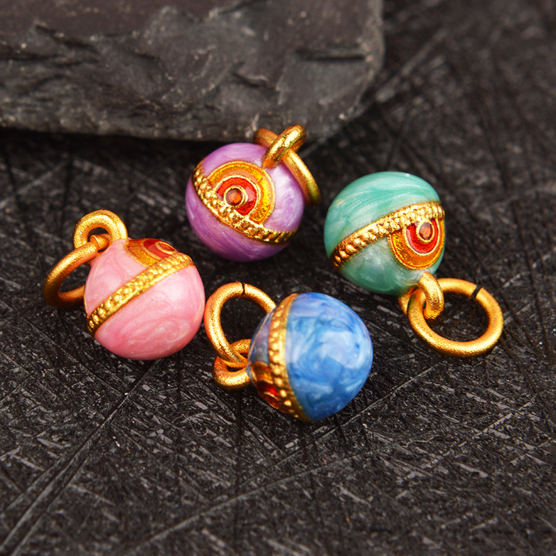 Chinese Style New DIY Accessories Enamel Small Round Ball Small Trolley Colorfulful Ball Pendant Necklace Bracelet Accessories