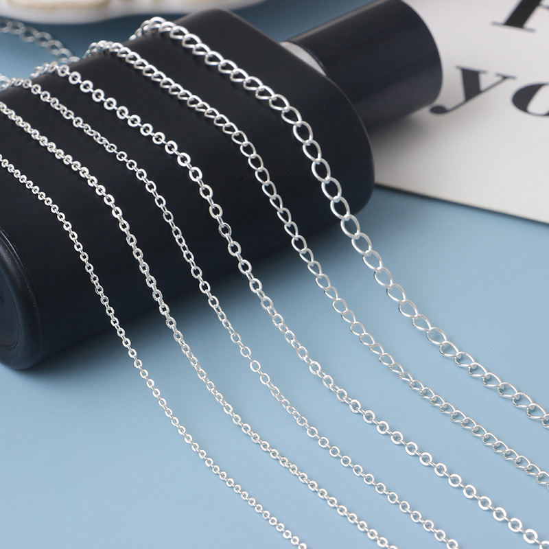 Copper chain plating S925 sterling silver color flat o chain cross chain silver loose chain Handmade diy necklace jewelry accessories