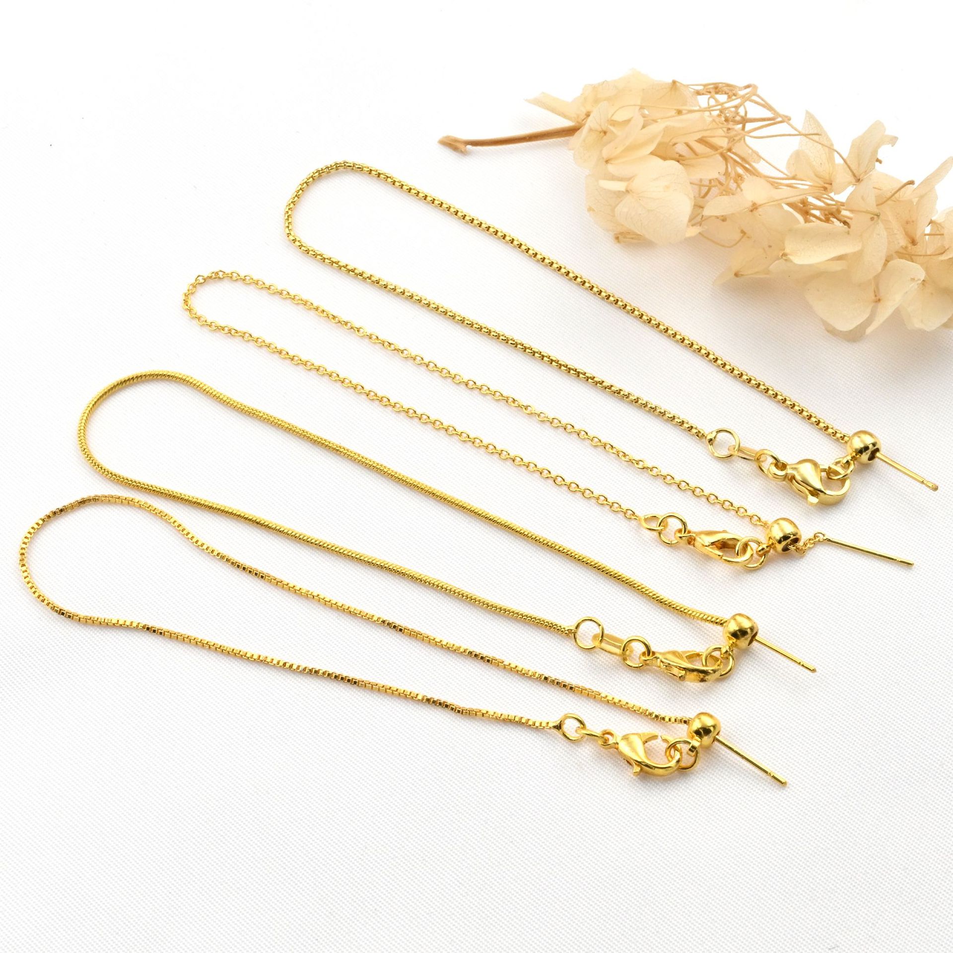 14K package gold color flat single buckle chain wholesale brass side chain universal loose chain diy jewelry SF flat chain material