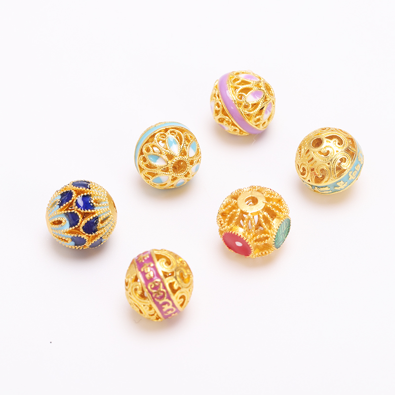Ancient Gold Filigree Hollow Ball Spacer Bead Pendant Bracelet Necklace Hand Rope Bracelet Accessories Transfer Bead Large Hole Spacer