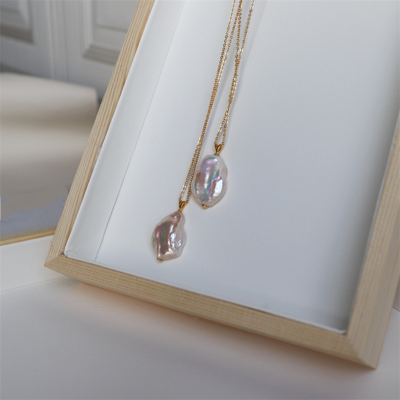 suu Design Simple Highlight Color Freshwater Baroque Pearl Pendant Necklace Niche Silver Pendant Head