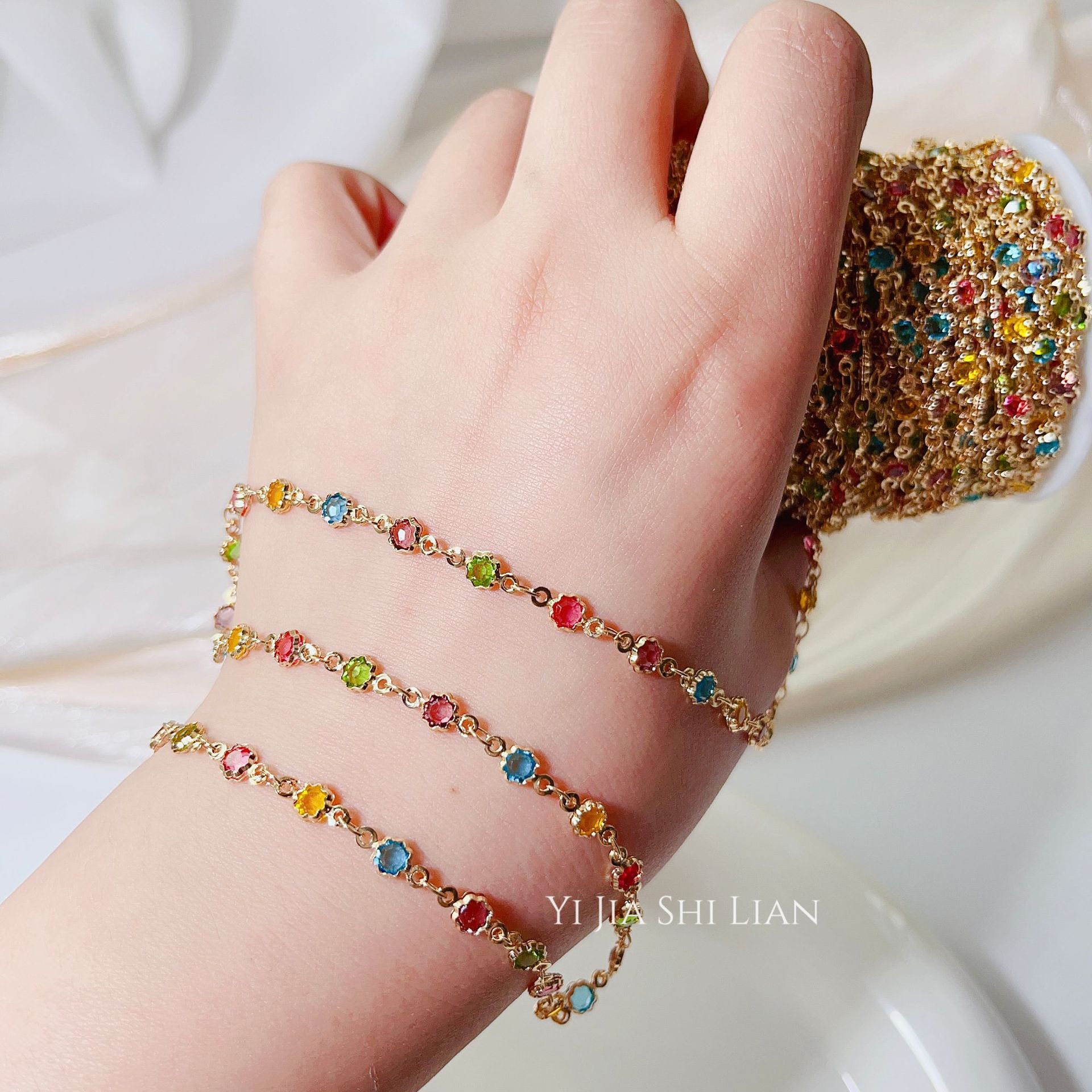 diy jewelry gradient color zircon chain niche design color copper chain lace zircon necklace bracelet material