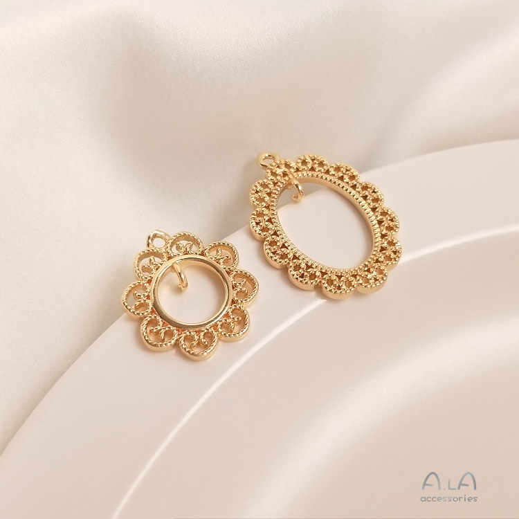 14K bag gold color copper bag real gold lace hollow hanging frame pendant earrings necklace pendant diy jewelry accessories