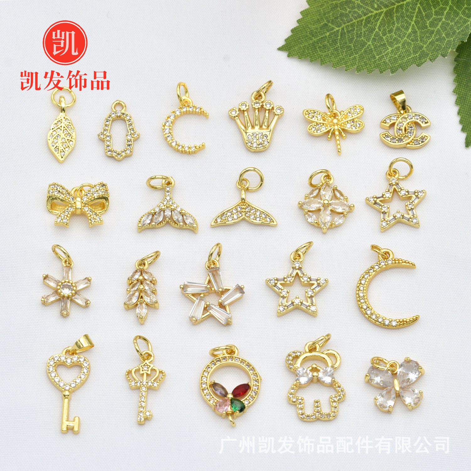 18K Gold Micro-Inlaid Zircon Accessories Star Moon Heart Pendant DIY Necklace Earrings Pendant Bracelet Accessories