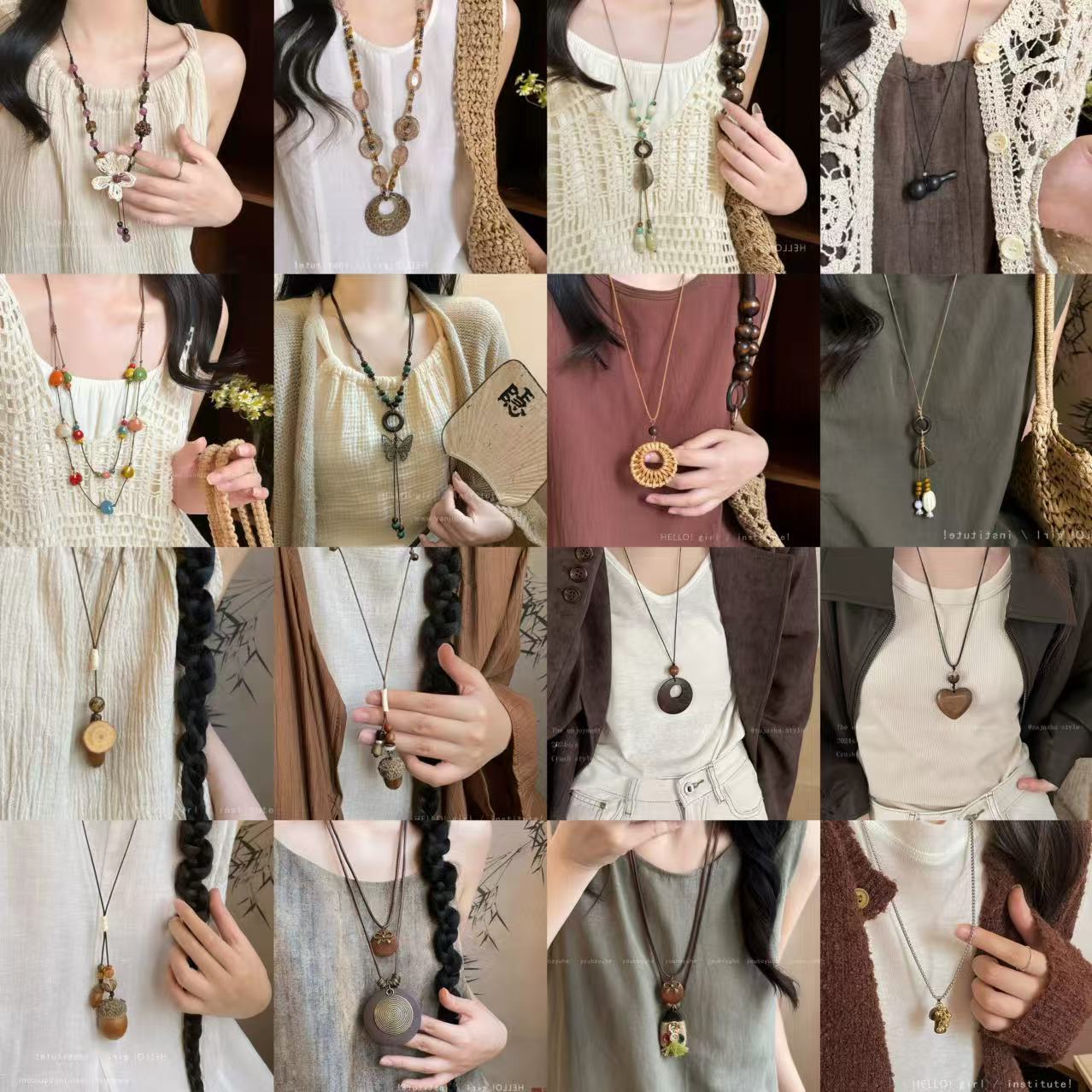 Ethnic style ceramic sweater chain retro women's versatile handmade accessories necklace new Chinese style red book with long style