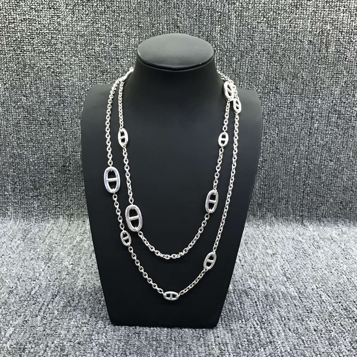2017 European and American fashion sweater chain pig nose necklace H figure letter long pendant silver jewelry wholesale