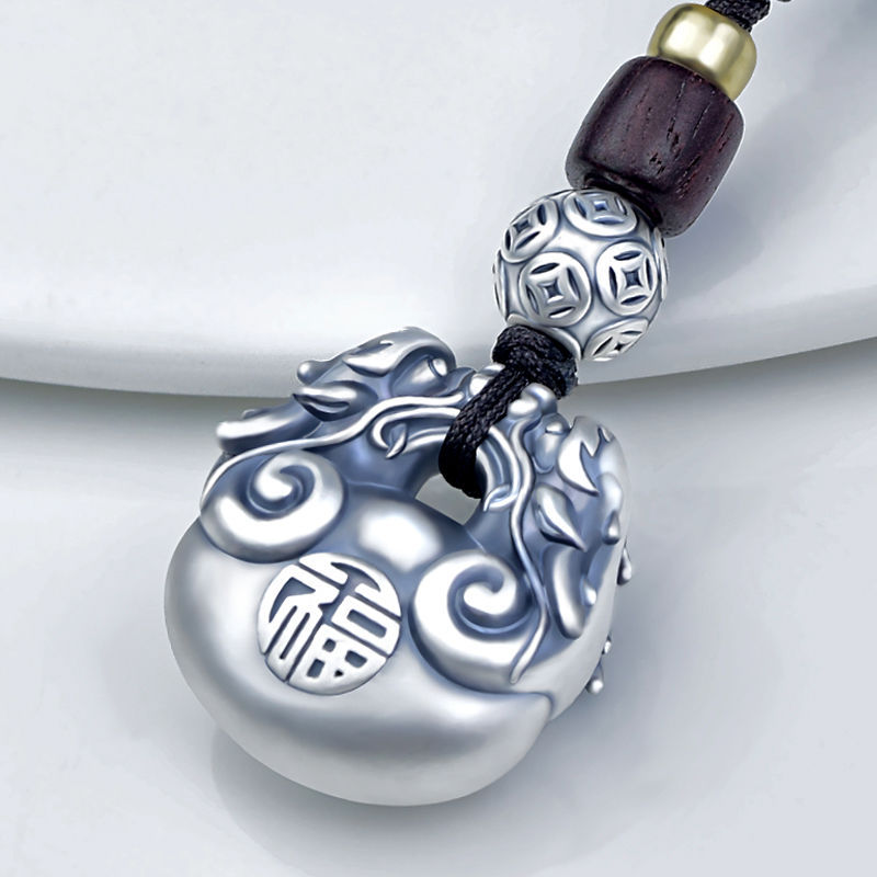 Silver Plated Ssangyong Master Key Chain Lucky Lock Pendant for Men and Women Key Chain Retro High-end Car Hanging Gift