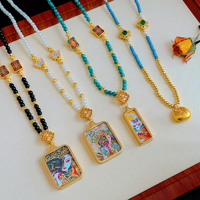 New Thai Buddha Brand Chain Original New Chinese Thangka Imitation Turquoise Necklace Chain Clavicle Chain Women's Jewelry