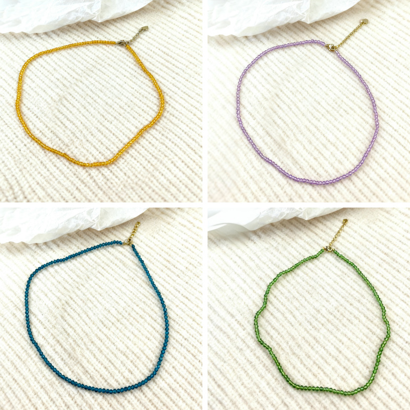Korean Version Sweet Dopamine Millet Bead Necklace with Steel Wire, Girly Style Rainbow-Colored Glass Rice Bead Choker