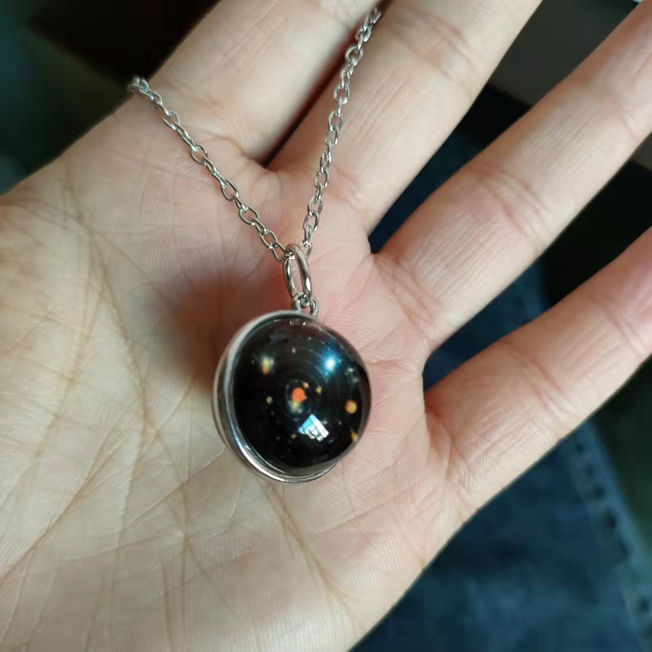 European and American Fashion New Style Galaxy Nebula Universe Luminous Double-Sided Retro Pendant Necklace Creative Starry Sky Starry Night
