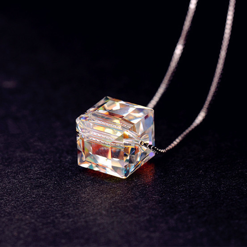 S925 silver Aurora cube sugar necklace South Korea ins cold style crystal clavicle chain elegant trendy crystal jewelry for women