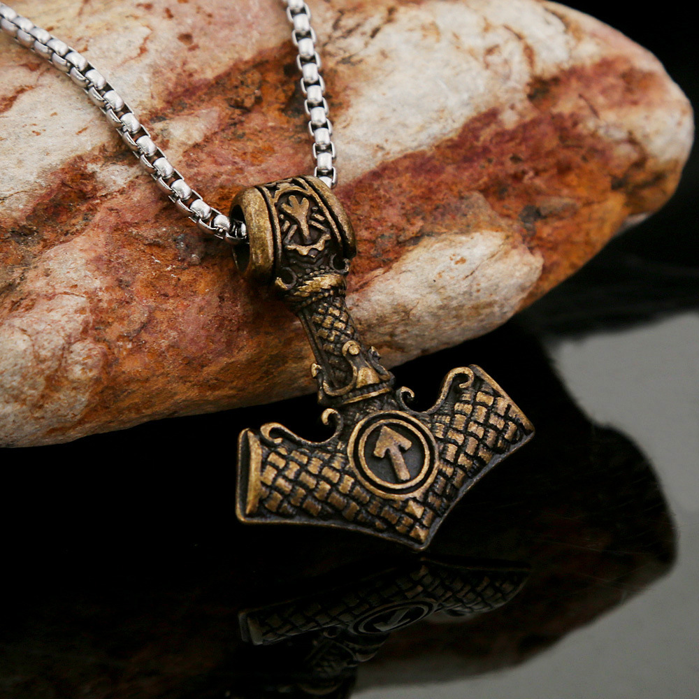 AliExpress aoding Thor hammer Viking rune stainless steel pendant European and American popular men's titanium steel necklace wholesale